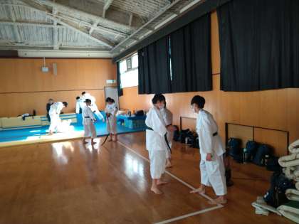 格技室では、柔道部と少林寺拳法部が、顧問の先生の指導のもと、稽古を積んでいました!