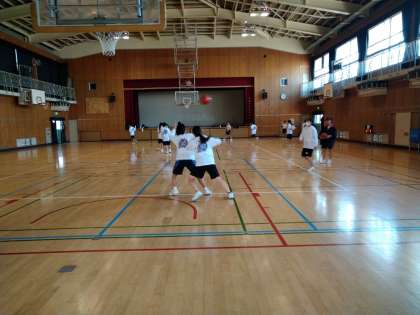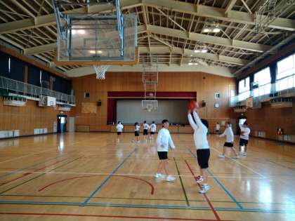 午前は、バスケットボール部の練習が体育館で行われていました。基本練習を繰り返し行っていました。ナイスシュートも?見られました!