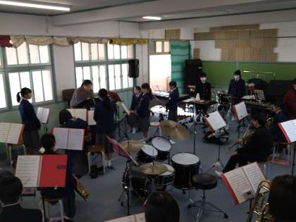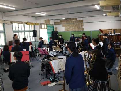 校内では、吹奏楽部が活動をしていました。演奏前入念に確認を行っていました。頑張っています!