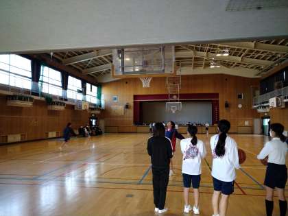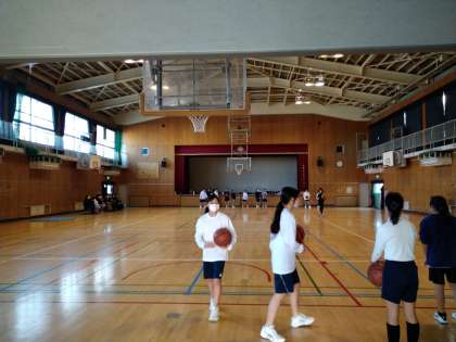 午後から、体育館ではバスケットボール部が練習に取り組む姿が見られました。