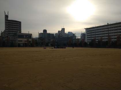 本日も朝から部活動がグラウンドで行われています。ミーティングの後、陸上部の活動が始まります。