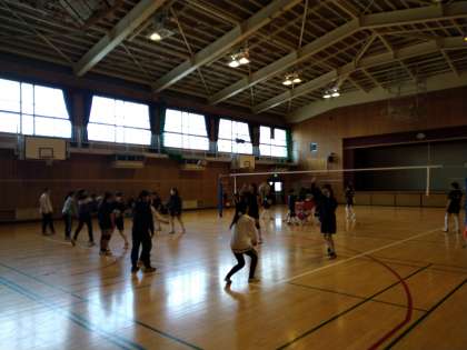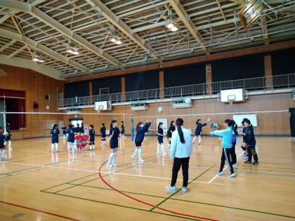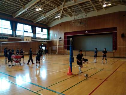 本日、バレーボール部は午後から体育館で練習を行っています。14:00からは、校下小学生も部活動体験に参加しました。中学生のみなさんが、しっかりと教えている様子が見られました。頑張っています、バレーボール部!