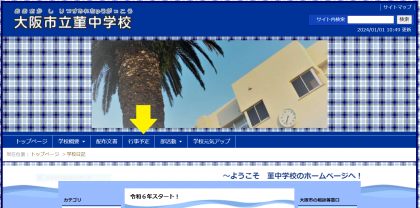 中学校ホームページのトップページにあります「行事予定」をクリックし、2学期前半の予定をご確認ください。