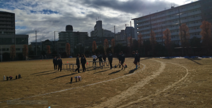 グラウンドでは、陸上部が活動をしております。入念にアップをしています。黙々と一つひとつの動きを確認しながら、活動をしています。