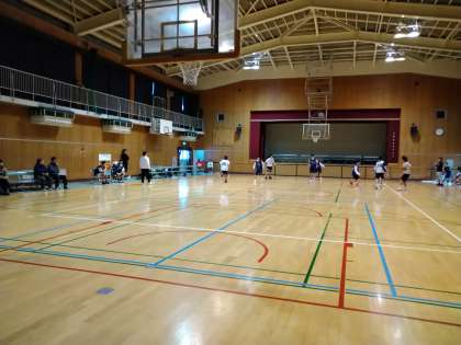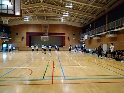 体育館では、バスケットボール部が練習試合を行っていました。市内と市外の学校と3校での練習試合でした。明後日の市大会での活躍を期待しています!がんばれ!