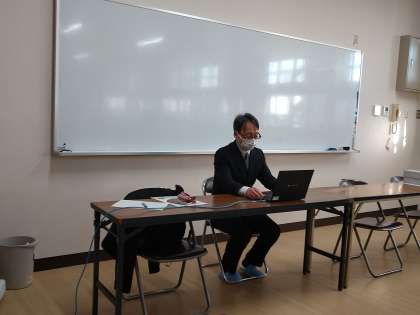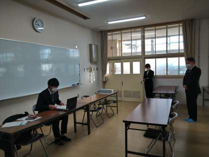 今日は、がんばって登校してきたみなさん、ありがとうございます。無理せず、自分のペースで取り組みましょう。この冬休み、トラブルに巻き込まれた等のことがあれば、信頼できる先生に相談してください。また、被害調査アンケートを行いますので、記入してください。」