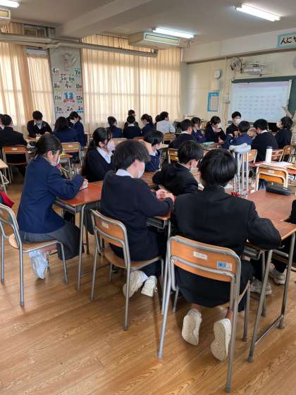 12日(金)6限目の1年生の学活は、各クラスでの取り組みでした。席がえの学級もあり、3学期の体制を整えました。頑張ろう、77期生のみなさん!