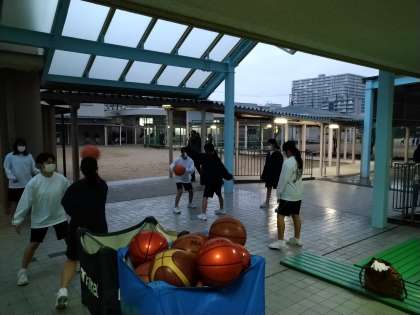 体育館では、バレーボール部が活動をしており、体育館前ではバスケットボール部が練習に励んでいました。どの部活動も熱心に活動をしてました!次の大会に向け、頑張ってくださいね!