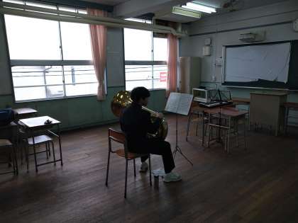 吹奏楽部は、校内で練習に励んでいます。次のコンクールでの活躍を期待しています。