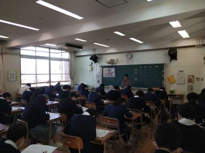今日もとても寒い朝を迎えました。本日は、1年生 車いす事前学習、2年生高校出前授業、3年生は、学年末テストが実施されました。