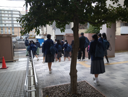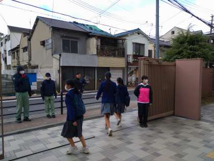 先生方、管理作業員の方々、下校の見送り、「ありがとうございます。」
