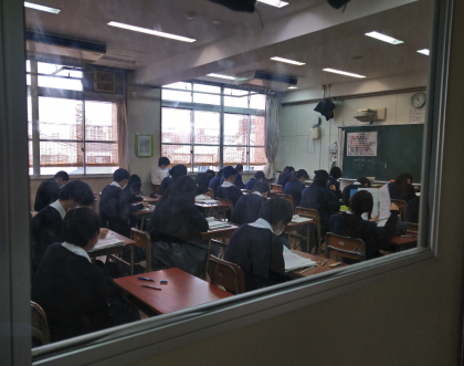 最後の教科の音楽のテストがこれから行われます。テスト直前の最後の学習風景です。結果は如何に…!?