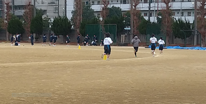 保健体育の授業がグラウンドで行われていました。寒さに負けず、持久走に取り組む姿が見られました!一緒に走っている先生の姿が!先生の走る姿に刺激を受け、良いタイムが出ました!生徒のみなさんも先生も頑張っています!