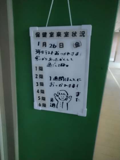 「3年生 テストおつかれさま 寒いから あったかくして過ごしてね。1週間ほんとにおつかれさま!また来週」