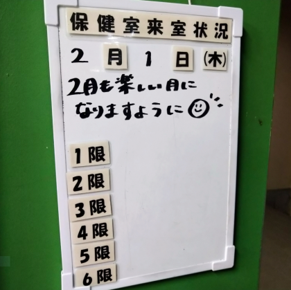 保健室から温かいメッセージです。「2月も楽しい月になりますように」いつもありがとうございます!