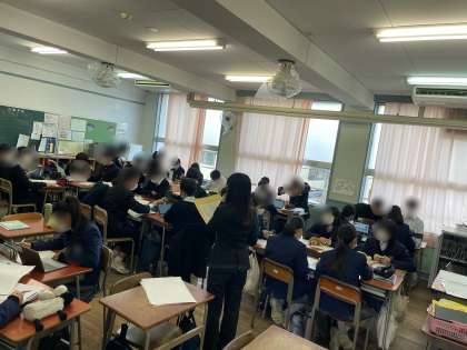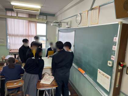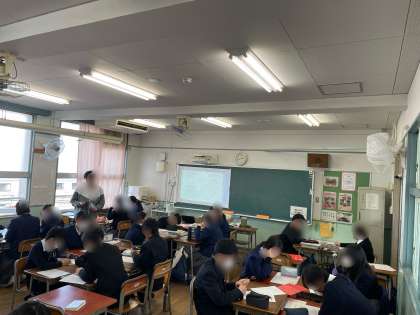 昨日に引き続き、6限目に修学旅行の取り組みを行っています。班に分かれて新聞作りに取り組んでいます。タブレットを使い、修学旅行先の地理、人口、名産品、観光スポットなどを調べて記事にしています。どんな新聞ができあがるのか楽しみです。
