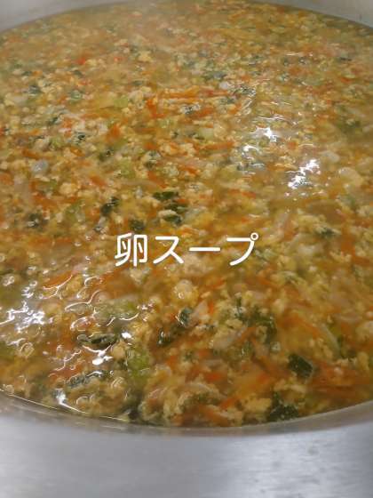 鶏肉、玉ねぎ、チンゲン菜、にんじんを分量の湯で煮上げ、塩、こしょう、うす口しょうゆ、中華スープの素で味付けし、除去食を取った後に卵を流し入れます。