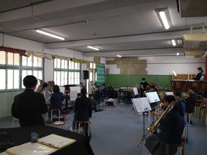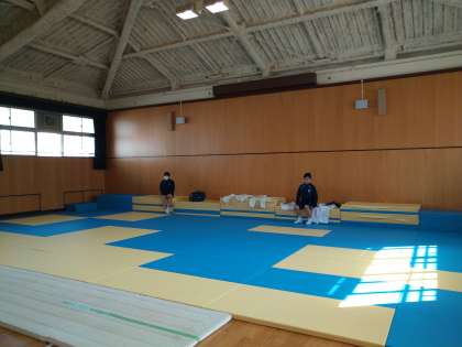 柔道部は練習前の風景、吹奏楽部も部活動指導員の方にサポートしていただきながら、練習に取り組んでいます。休日ですが、どの部活動も、頑張っています!