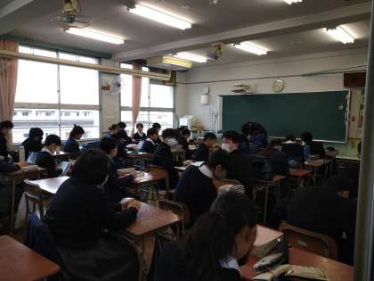 本日、2年3組は学級閉鎖のため、オンライン授業となります。その準備を先生方が準備をしております。オンライン授業、しっかりと学習をしてください。