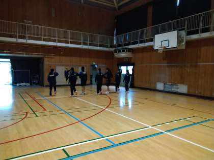 本日、2年生の保健体育の授業は、体育館でダンスの授業でした。まずは、チームで練習を行いました。