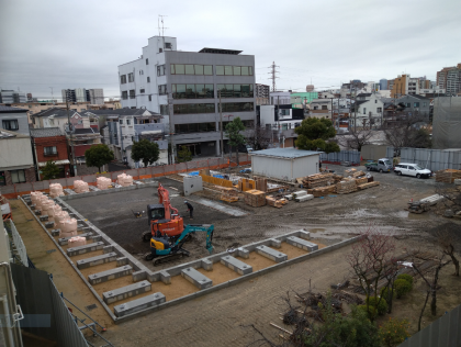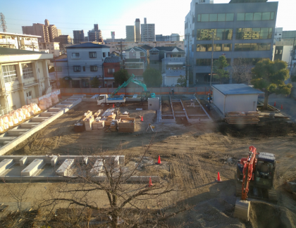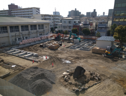 プール工事が進んでおります。プールの土台作りが始まりました。毎日、変化が見られます。