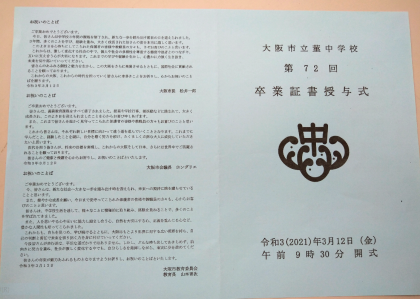 卒業証書授与式におけるマスク着用等につきまして、ご理解・ご協力賜れば幸甚でざい