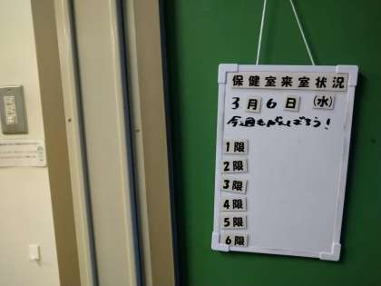 保健室の今週のメッセージボードは、「今週もがんばろう!」です。