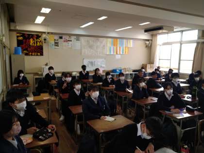 6限目、3年生は各学級での取り組みでした。それぞれの学級で、卒業前にレクリエーションを行いました。クイズ、思い出DVD、漫才等々、とてもいい雰囲気でした。みんな、いい表情していましたね!