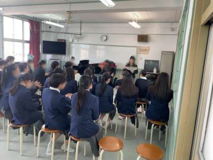 本日は学級で合唱コンクールに向けて練習を行いました。普段はCDなどの音源でしか練習できませんが、音楽室をお借りし、ピアノの伴奏で練習することができました。歌い終えた後には担任の先生から以前に比べて声が出ており、素敵な歌声だったと好評をいただきました。また気を付けた方が良い点なども確認し、合唱コンクールに向けて気持ちが高まっている印象を受けました。来週3月12日に音楽室で練習するクラスもあります。本番に向けて練習していきましょう!!