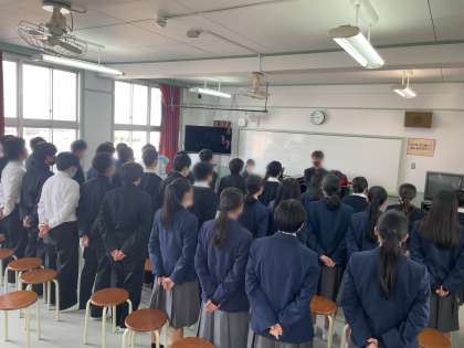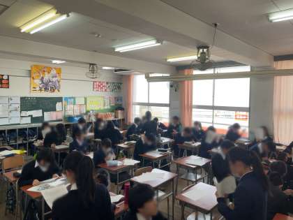 また本日学年末テストの反省を行う学級もありました。範囲が広く少し難しかった教科もあったと聞いています。3年生に向けて理解できたところ、できなかったところなどをテスト結果で分析し、今後につなげていきましょう!がんばれ76期生♪