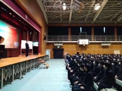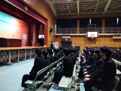 校長先生の話を聞きました。自己肯定感をしっかりと持って、明日の式に臨んでいただくようにと、心強いお言葉をいただきました。