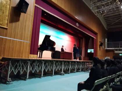 最初から最後まで、一通りの流れを確認しました。送辞、答辞の練習をしました。明日、楽しみにしています。