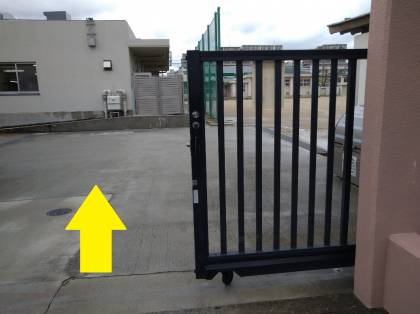 まず、自転車の方は、グラウンド南門(給食棟)からご入場ください。