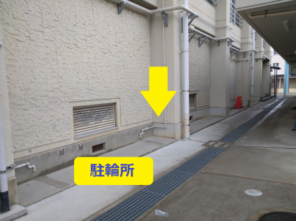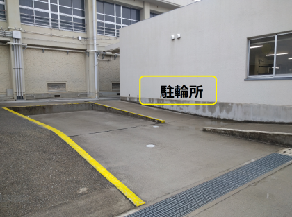 体育館横に停めれない場合は、給食棟横に駐輪してください。