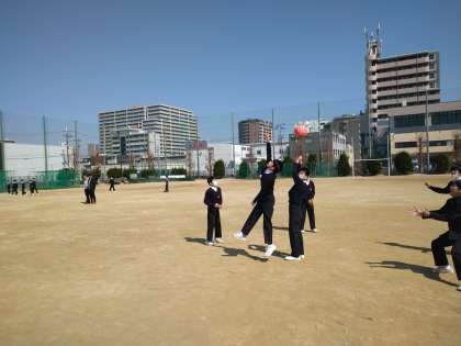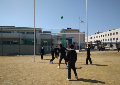 いい天候のもと、1・2年生が元気にボール遊びをしていました!