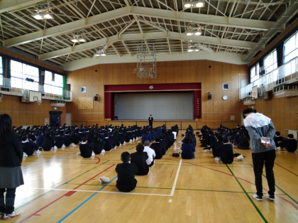 本日、4限目2年生は学年集会を行いました。この春休みを有意義に過ごすために、生活面・学習面などを中心にお話がありました。3年生に向けての準備をしてくださいね。