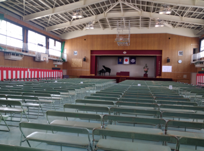 菫中学校、新2・3年生のみなさんが、明日に控えた入学式のため、とてもきれいな舞台を整えてくれました!ありがとうございます。