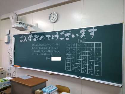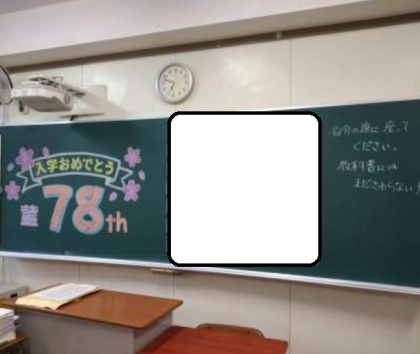 新入生のみなさんを、温かく心のこもった黒板アートが迎えてくれました。ありがとうございます。