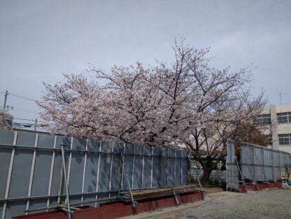 プール工事が行われ、近くで桜を見ることが難しい状況です。昨日、今日といい天候に恵まれ、桜が一気に開花しました。写真ですが、美しい桜をご覧いただけますと幸いです。