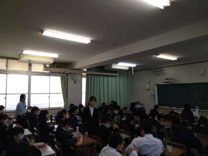 緊張の面持ちでのスタートですね。1年4組、5組、6組の様子です。