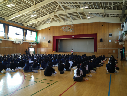 本日1年生は、水曜日定例の朝の学年集会を行いました。学年主任の先生より、友だちとの交友関係、またルールを守ることの大切さのお話がありました。スポーツと同様にルールがあるから、きちんと成立します。いい集団を78期生みんなで作ってください。