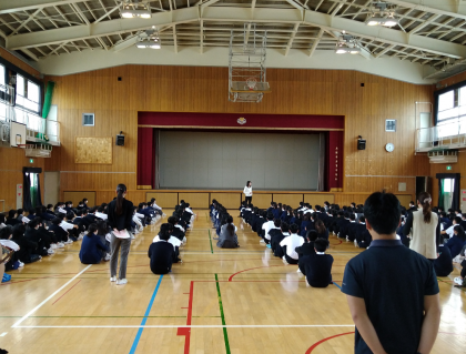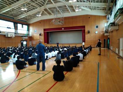 息という字は、自らという字に心と書きます。自分の心の状態を表すものが「息」。ため息をつく時の感情も、「息」に表れます。いい言葉を発する時も、「息」に表れます。「息」を使い、いい言葉かけ、あいさつをしたいものです。他にもいろいろな漢字から、素晴らしいお話しがありました。77期生のみなさん、この1年、どんなことにも前向きにチャレンジする気持ちを持ってください。