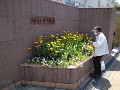 昨日、正門の花壇のお花のお手入れを地域ボランティアの方にしていただきました。季節に合わせ、素敵なお花を育てていただいています。いつもありがとうございます。菫中学生をはじめ、訪問していただく方を温かく見守ってくれているお花にも感謝です。
