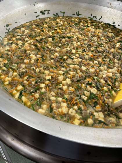 給食では、トウバンジャンを使って辛みをつけています。