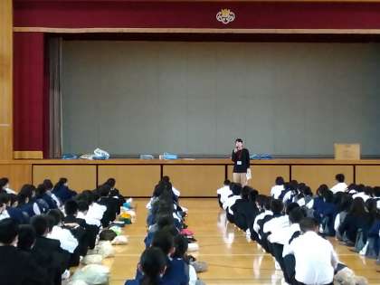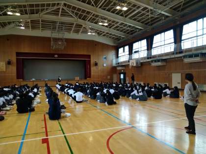 本日水曜日は、定例の1年生の学年集会が行われました。