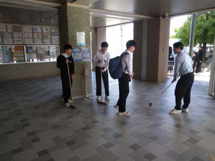 青空広がる空のもと、清掃活動が行われていました。先生、生徒のみなさん、しっかりと清掃をしてくれています。「ありがとうございます。」