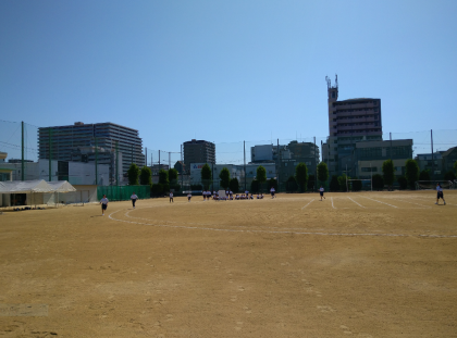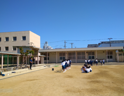 とてもいい天候の中、保健体育科の授業が行われていました。1年生の授業の様子です。元気よく行動していました!がんばっています、78期生!