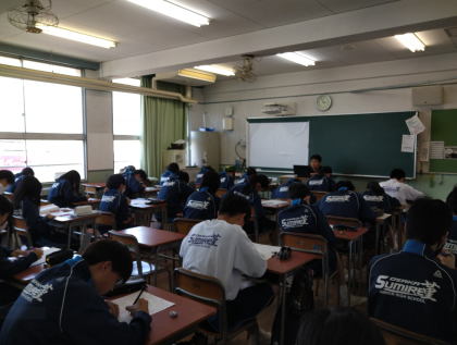 みんなしっかりと考えています。テストに向けて、しっかりと準備をしてください。がんばれ、77期生のみなさん!