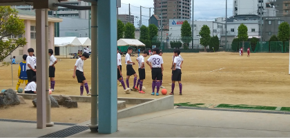 午後からは、体育館では、バスケットボール部が練習をしており、グラウンドでは、サッカー部が大会に臨んでいます!次の試合に向けて、調整中です。がんばっています!