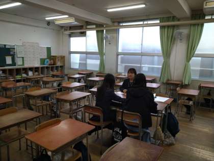 今日は、1・2年生の相談会が放課後に行われました。保護者の皆様、足元の悪い中、ご来校いただき、感謝申しあげます。今週は、1・2年生の懇談会が引き続き行われます。よろしくお願いいたします。
